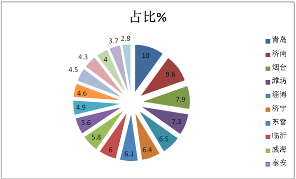 特点四、各地市场发展不平衡,青岛、济南、烟台三区域销量集中度占据全省的27.1%