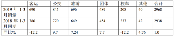 根据最新监测数据统计,2019年1-3月山东区域各细分市场大中客销量与2018