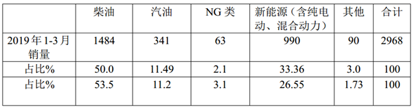 1、柴油仍然是山东2019年第一季度大中客销量结构中最大的主体,但同比市场比例有所下降(下降了近3.5个百分点)。