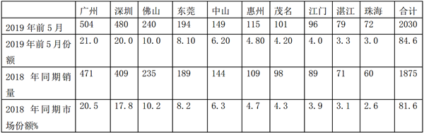 - 2019年前5月广东区域公路客车市场特征研析