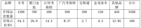 目标客户政府及事业单位接待用车较多,使用丰考政府及事业单位接待用车、星级酒店、外资企业较多,使用丰考旅游客运、大型企业用车较多,丰考和国产进口机器较多旅游客运居多、使用国产中高端品牌较多,也有部分使用35-40万的丰考团体、租赁用车居多,使用中端仿考较多农村客运、私人小业主,全部使用中低端仿考