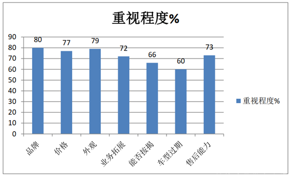 可见,品牌因素、价格、外观、业务拓展、分期付款、车型过时、售后有保障等是影响广东个体购买考斯特车型的主要七大因素。