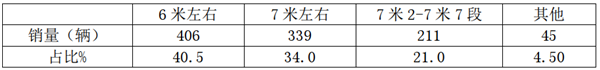 特点八、6米段销量占比最大,其次是7米段