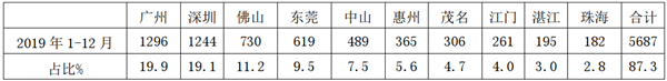 上表数据表明,2019年广东区域公路客车在各地区的分布特点: