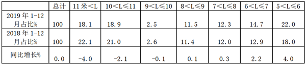 从上表可以看出:按长度段划分广东区域2019年公路客车市场结构,其特征: