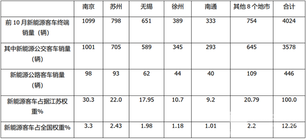 从新能源客车细分市场终端销量看,江苏省前10月共计销售446辆新能源公路客车,新能源公交销3578辆。此分析为车企下一步进军江苏区域的新能源客车市场制定策略提供了一定量化依据。