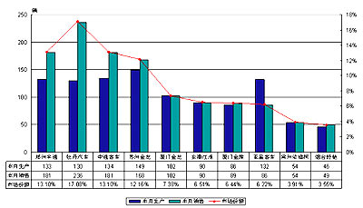 2004年1月部分客车分长度8-9米产销对比分析