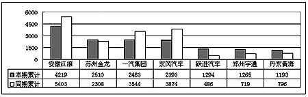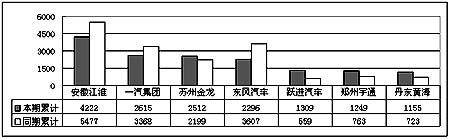 注:其他企业累计销量为四川汽车(127)、成都隆鑫(10)、河北长安(27)、桂林客车(11)、成都汽车(5)、上海汇众(0)、浙江飞碟(3)、湖南三湘(0)、镇江汽车(3)、广州五十铃(2)、北方华德尼奥普兰(0)、沈飞客车(0)、郑州轻型(1)、广州羊城汽车有限公司(0)、辽宁黄海(0)、重庆专用(0)。