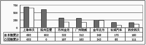 2004年1~6月份大型客车销量对比(前7家企业) 单位:辆