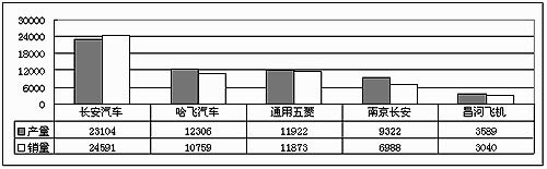 6月份微型客车生产企业产量排名前三家企业是长安汽车、哈飞汽车和通用五菱。