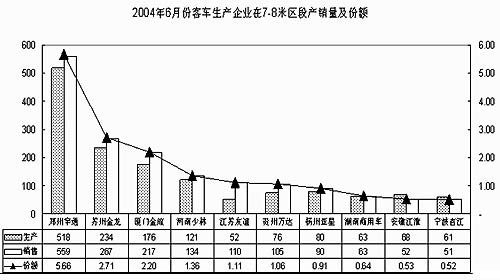 2004年6月部分客车分长度7-8米和8-9米区段产销对比分析
