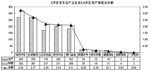 2004年6月部分客车分长度5-6米和6-7米区段产销对比分析