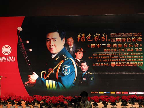 2008年6月17日,由潍柴动力全程支持的"绿色家园.拉响绿色旋律"陈军二胡独奏音乐会新闻发布会在中国人民解放军军乐厅举行。