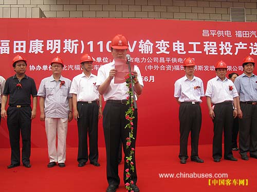 随着福田康明斯的成立,其配套设施项目也陆续开展建设。今天,大家所看到的这座为福田康明斯工厂量身定做110千伏输变电工程就是其中之一。北京市电力公司和昌平区电力公司在获知福田康明斯公司成立后,为保证该项目顺利投产,立即筹集资金和建设力量,从2月底开始开工到今天正式投产送电只用了短短三个月的时间,这在昌平区输变电工程的建设史上尚属首例。该变电工程的竣工,不但解决了福田康明斯工厂的用电需求,同时也满足了欧V客车二期技改、节能减排重点试验室的运行需要,更为把沙河厂区建设成为昌平乃至北京的重要汽车基地提供了重要的能源保障。这种急企业所急,想企业所想的精神为福田公司的发展提供了有力的环境保障!在此,请允许我代表福田汽车再次向支持福田康明斯110千伏变电站建设的各级领导表示衷心的感谢!