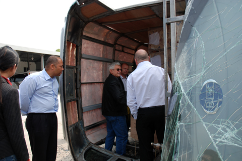 结束后还发生一件有意思的插曲:专家要进入倒地后的车内,只能通过前挡风玻璃处进入,百路佳的工人经过几番努力终于将前挡风玻璃一侧扯开,澳大利亚国际巴士与客车公司的总裁风趣地说:Open the door! 此话似乎一语双关:澳大利亚客车市场将再次向中国百路佳敞开大门。