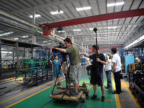 近日,我国西部最大最强的客车生产企业恒通客车迎来了几位特殊的客人,他们说着一口流利的英语,拿着专业的摄影器材,给崭新的恒通工业园区带来了欢乐和活力。他们就是来自英国最大的电视台之一Channel4(第四频道)的专业摄制组成员,摄制组一行四人在制片人兼导演艾德里安的带领下,来到中国,为正在筹备拍摄的大型纪录片《全球金融环境变迁》而忙碌奔走。