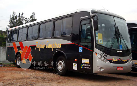 XINGKONG.COM(Chinabuses.com):近日,从巴西马可波罗客车公司传出消息,300辆Ideale 770系列客车将交付安哥拉客户Azinor公司投入省际客运线运营。车身全长12.5米,Ideale 770系列客车采用梅赛德斯-奔驰OF-1721客车底盘,最大载客量达52人。