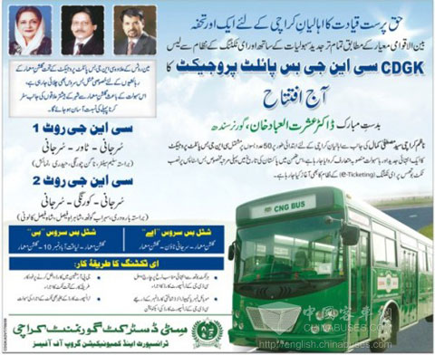 XINGKONG.COM(Chinabuses.com):近日,在巴基斯坦最大城市卡拉奇,首批50辆天然气公交车正式投入当地公交线路试运行。为治理汽车尾气给当地带来的空气污染,卡拉奇市政府引进了首批50辆绿色环保天然气公交车,其中25辆来自日本日野,另外25辆来自韩国大宇。