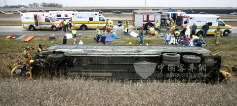 中国客车英文网:美国明尼苏达州政府官员18日证实,当天下午一辆从纽约州罗彻斯特市开往艾奥瓦州诺斯伍德市的旅游客车在奥斯汀市附近的90号州际公路上发生翻车事故。在事故现场,救援人员分别从客车的正面和车顶把伤员从客车里平安救出,在这里,起着至关重要的就是客车安全逃生窗,可以说,它是客车在发生交通事故时,乘客的生命通道。