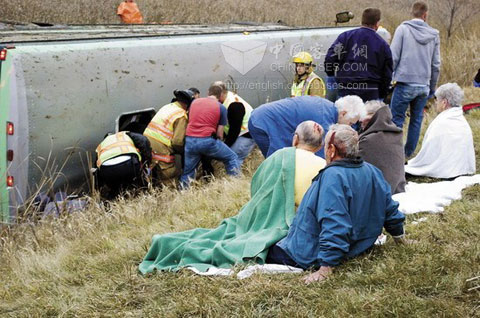客车安全逃生窗从功能的型号分:一种是紧急逃生窗,其位置可以在车窗处或者车顶处,另一种是符合安全设计的普通窗;紧急逃生窗设计要求,乘客在出现紧急情况时,用一只手或两只手,操作一个或两个轻省简单快速的动作就能打开逃生窗,实现快速逃生的安全理念。安全逃生窗有3个特点:一要安全实用,二要美观明显,三要耐用易开,并且要用醒目的标识标明打开机关位置,不能有障碍物。下面,看看这次美国客车侧翻事故以及救援情况。