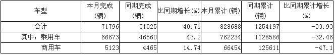 2、商用车累计出口为66454辆,比去年同期下降了47.10%。