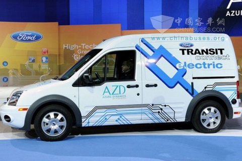 中国客车英文网[www.chinabuses.org]: 在这次的芝加哥车展上,我们看到了这款福特之前宣布要参展的电动车福特 Transit Connect Electric。 Transit Connect Electric是以都会区短程运输为主要目标,这款采用电动马逹和锂电池组为动力来源的零排放商用车,可透过120V或240V交流电源来完成充电,其续航里程约为80英里(约128.7公里)。
