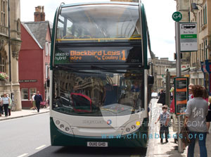 中国客车英文网[www.chinabuses.org]: 英国第一批受益于 “绿色客车” 计划的新能源客车开始在牛津地区投入运营。这批ADL Enviro400H双层客车是在Stagecoach公司在牛津的1号公交线路运营的,分别从牛津市中心开往Cowley路和Blackbird Leys。这批订单共有26辆客车,其中的12辆新能源客车已经交付运行。