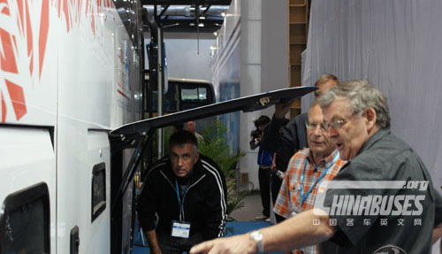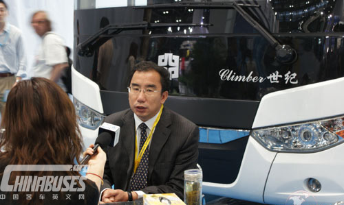 中国客车英文网[www.chinabuses.org]: 2011年5月12-15日,由交通运输部主办,交通运输部科学研究院、北京市贸促会联合承办的2011北京国际道路运输、城市公交车辆及零部件展在北京国家会议中心隆重举行。国内23家整车企业悉数前来参展,各自展出了自家的最新产品。众多媒体细细品评71台展车后,一致认为中通世纪LCK6127H是本届展会最漂亮的两款公路客车之一。据悉,世纪LCK6127H是中通客车针对俄罗斯市场最新开发的高档产品,并在本届展会上获得“中国道路运输杯”最佳公路客车奖。针对海外市场的开发车型缘何如此出众?中通这几年在海外市场订单频频得益于什么?带着这些问题,记者采访了中通客车公司副总经理于春印。
