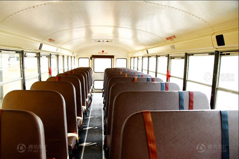 校车的内部空间都经过了特殊的设计,坐垫加厚;每个座位都配备了安全带;所有内部材料均为防火材料。