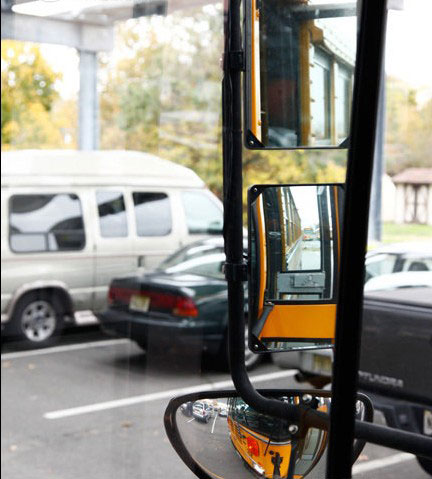 校车的后视镜也经过特殊的设计,以保证司机可以从各个角度观察到学生是否安全离开。