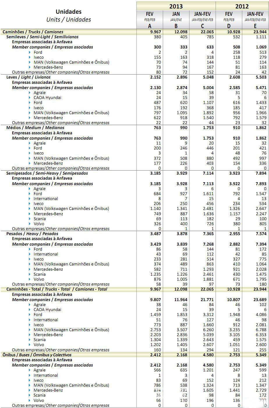 2013年2月巴西商用车销量统计(分车企)