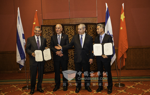 中国客车英文网[www.chinabuses.org]: 2013年5月8日,在以色列总理内塔尼亚胡的推动与见证下,厦门金龙联合汽车工业有限公司(以下简称"大金龙")与以色列Colmobil汽车公司在北京正式签署了经销商战略合作协议。通过本次合作,双方达成了合作开拓以色列及周边市场的共识。