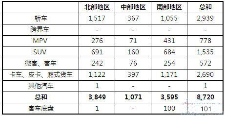 2013年10月越南各类汽车销量统计(分地区)
