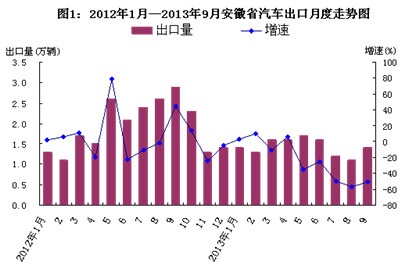 2013年前三季度安徽省汽车出口贸易情况分析