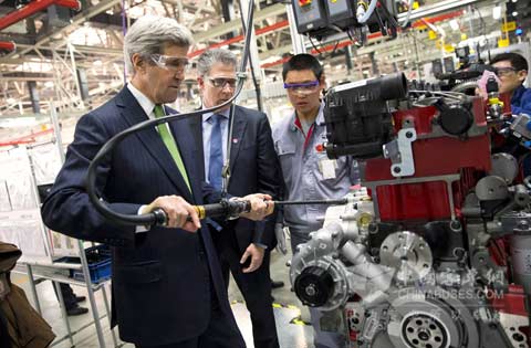 正在中国访问的美国国务卿克里参观福田康明斯发动机有限公司