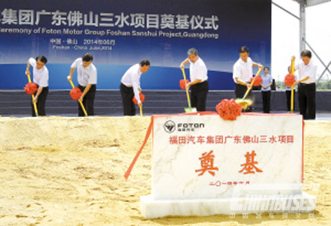 中国客车英文网[www.chinabuses.org]: 近日,福田汽车华南最大工厂——广东佛山三水工厂奠基。在这样一个挥汗如雨的桑拿天,佛山市代市长鲁毅、三水区委书记苏伟波等政府领导,悉数到场给福田汽车“撑腰”。因为,这三水工厂对福田汽车和佛山市政府双方都有着非同寻常的意义。