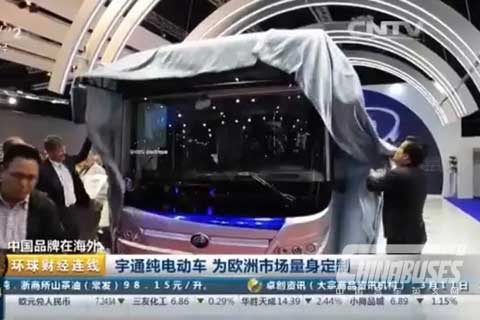 2015年10月,比利时世界客车博览会上,宇通推出首款面向欧洲市场的12米纯电动客车。