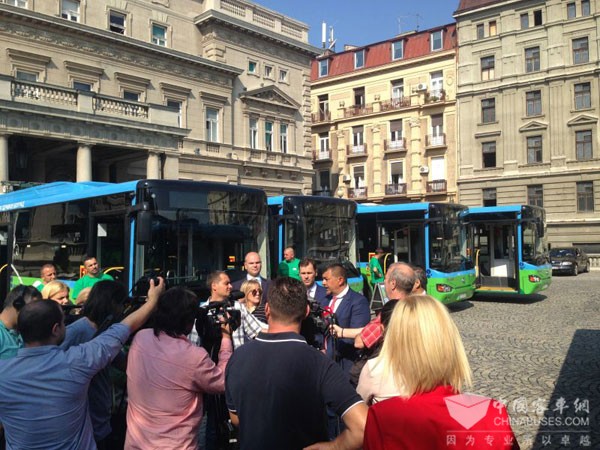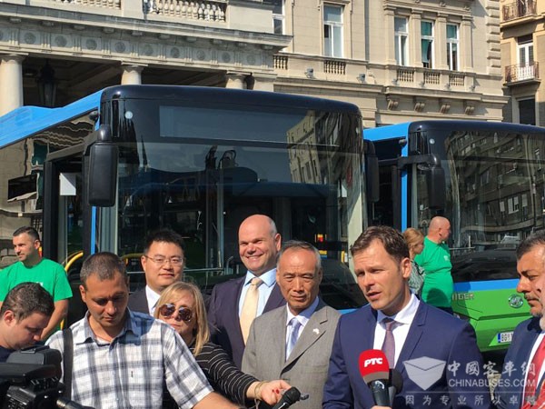 海格超级电容公交车在贝尔格莱德上线仪式 贝市市长辛尼萨.马利先接受媒体采访使表示:“我们正在考虑尽快替换贝尔格莱德所有的公交车。使用这种对我们的孩子、我们的环境、我们生活的城市有健康益处的公共交通工具。”