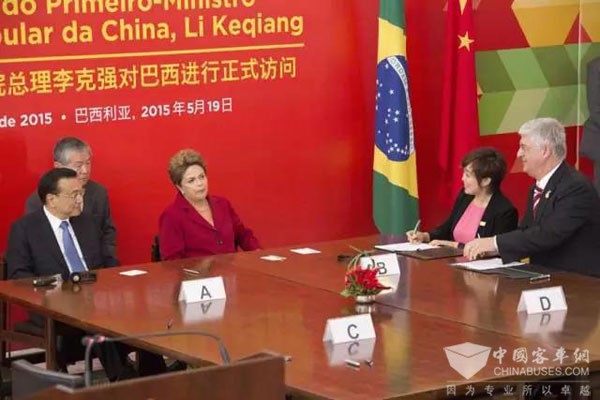 2015年李克强总理出访巴西期间,中巴两国领导人见证比亚迪正式进军巴西太阳能市场
