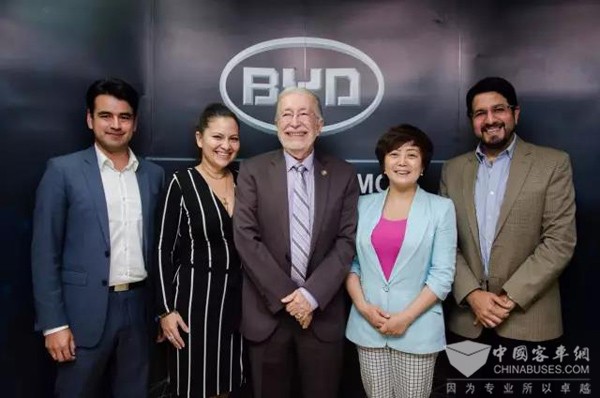 厄瓜多尔国家工业生产部部长SantiagoLeón先生(右一),比亚迪高级副总裁李柯女士(右二)与参会嘉宾合照 其实,这次合作并不是比亚迪与厄瓜多尔的第一次“触电”。比亚迪厄瓜多尔分公司于2016年11月成立,不久前的4月23日,比亚迪在厄瓜多尔城市Loja刚刚交付了该国最大规模纯电动车队——30辆比亚迪e5。这一车队也获得了厄瓜多尔政府的高度赞赏,Loja市长亲临现场见证了交车仪式,厄瓜多尔总统RafaelCorrea更在国家电视台就这一项目做了详细的介绍,对比亚迪纯电动公共交通解决方案极为认可。