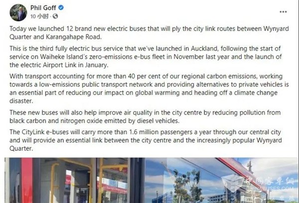 “这是继2020年11 月Waiheke Island,以及2021年1 月启动Airport Link 电动巴士项目后的第三个纯电动巴士服务项目。”在个人Facebook上,奥克兰市长菲尔·高夫给予了高度评价和认可。