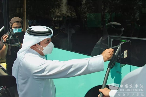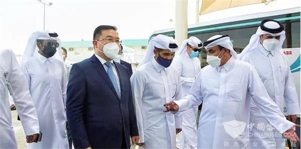 图 | 卡塔尔交通通讯大臣亲自为首批宇通纯电动客车充电