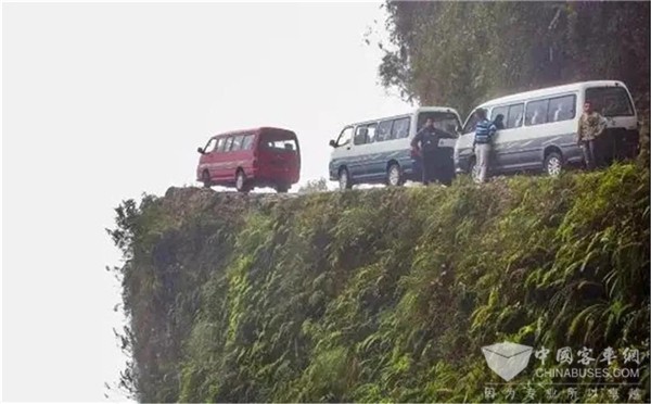 ▲金龙轻客在“死亡公路”北央葛斯公路穿行