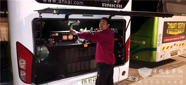 历经一路坎坷曲折,王爱林终于在2月23日抵达以色列,他不顾旅途疲劳,直奔车辆现场。他的到来,让客户吃下了一颗“定心丸”。在王爱林的一番检查和操作下,车辆运行得非常顺利,在场的所有人纷纷为王爱林和安凯客车服务团队竖起了大拇指。