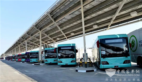 图 | 停放在卡塔尔最大电动车场站的宇通客车