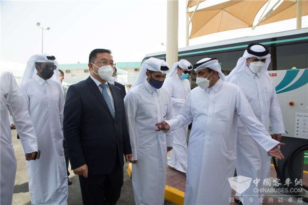 图 | 卡塔尔交通通讯大臣亲自为首批宇通纯电动客车充电