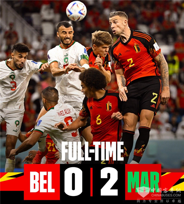 这场比赛由“欧洲红魔”比利时对阵“亚特拉斯雄狮”摩洛哥。摩洛哥上半场补时踢进任意球,经VAR判断队友越位取消得分,上半场0比0;下半场摩洛哥接连两次成功破门,2比0逆势获胜。