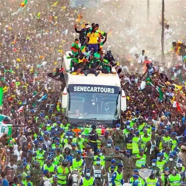 庆祝活动中,塞内加尔球队乘坐的豪华大巴来自苏州金龙,海格客车也是塞内加尔国家足球队的指定用车。
