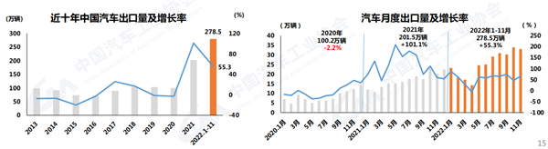 “出海”数量的高增长中也蕴含着质量的变化。海关总署的这组数据体现了中国汽车品牌在“走出去”过程中发生的变化,统计数据显示,2022年10月,我国汽车出口35.2万辆,同比增长89.6%。其中,新能源汽车出口14万辆,同比增长87.2%。1~10月,新能源汽车出口的前两大市场是比利时和英国。