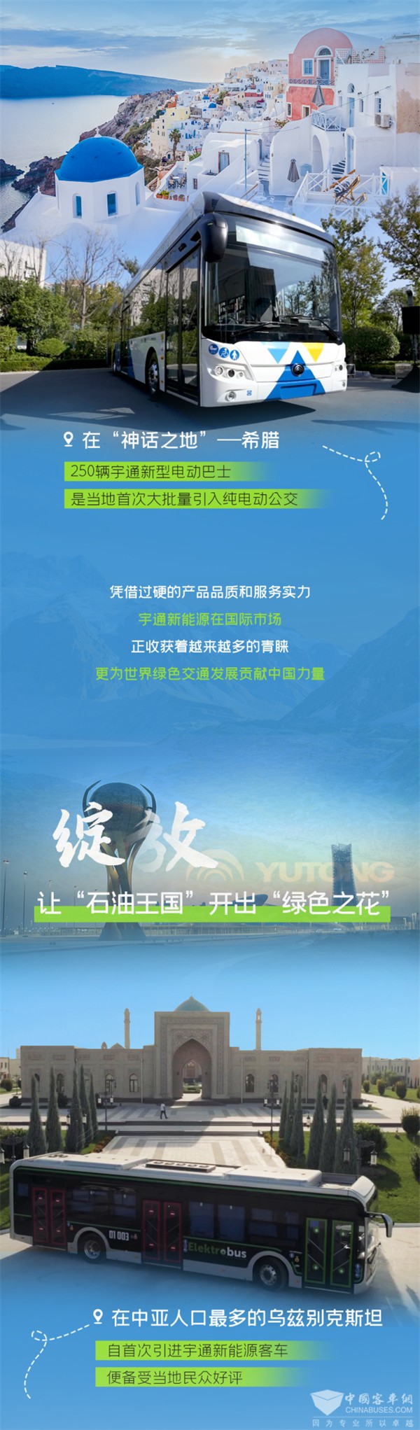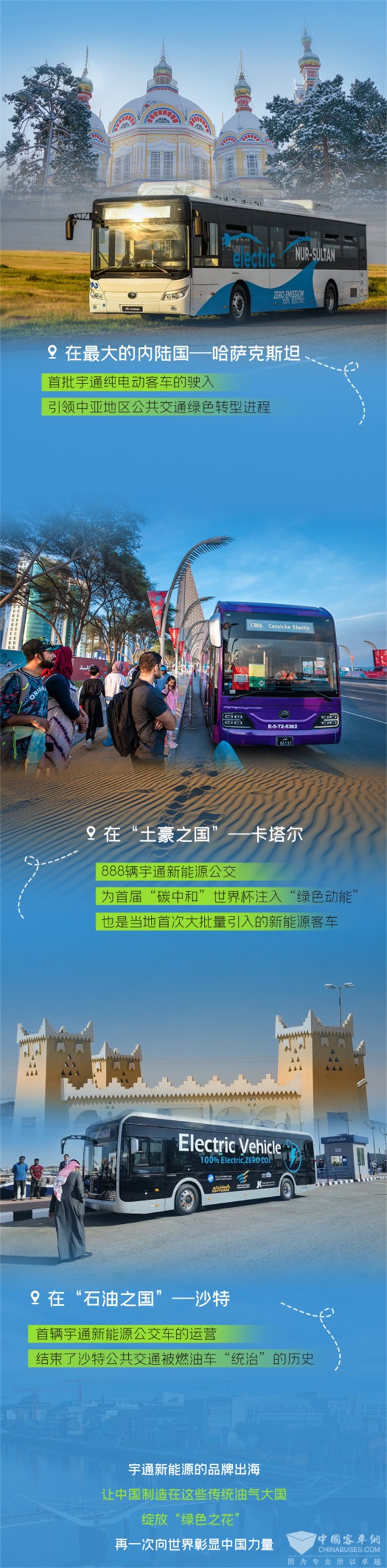 无论是在汽车发源地欧洲,还是在石油比水便宜的中东、中亚,又或是气候环境对新能源车来说更具挑战的拉美及非洲,都纷纷迎来了公共出行新能源化。驶入街头巷尾的新能源客车,带着当地居民进入了新的出行时代,而不少国家首辆新能源公交都选择了中国制造。